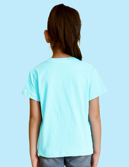 Nusyl Girl's Sky Blue Cute cat Printed Regular Fit T-Shirt