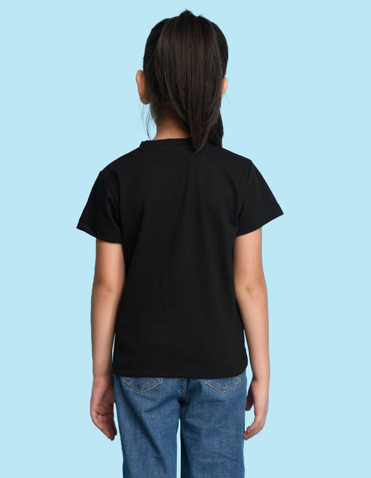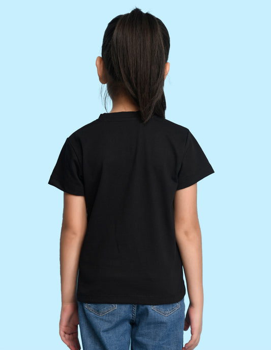 Nusyl Girl's Black My Little Fairy Printed Regular Fit T-Shirt