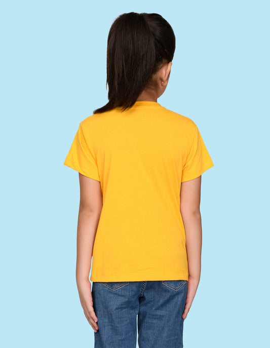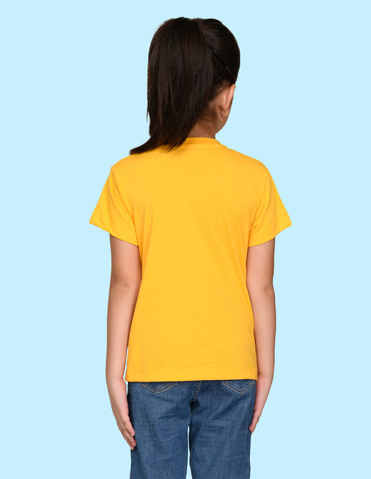 Nusyl Girl's Yellow Smile More Text Printed Regular Fit T-Shirt