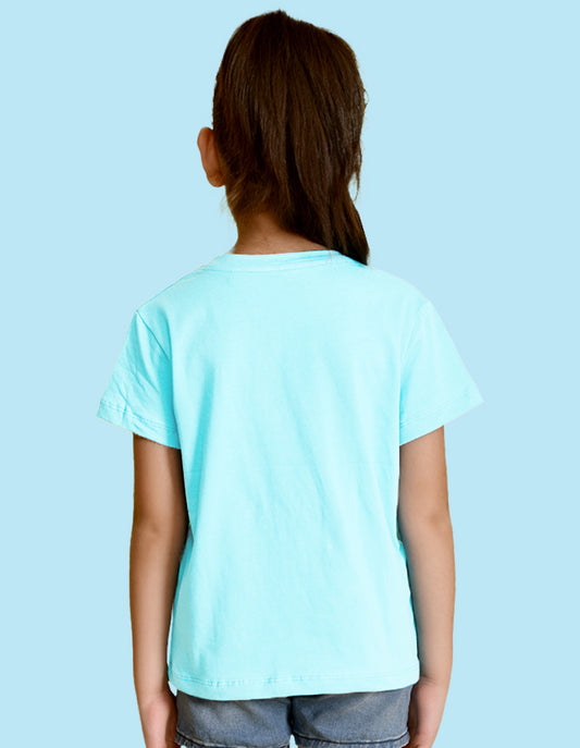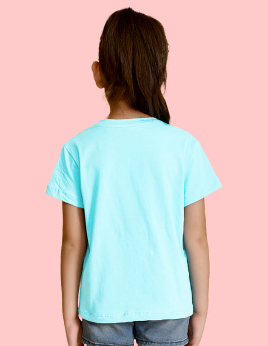 Nusyl Girl's Sky Blue My Little Fairy Printed Regular Fit T-Shirt