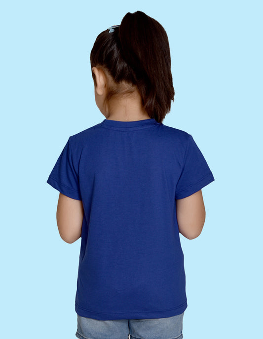 Nusyl Girl's Royal Blue Super Girl & Star Printed Regular Fit T-Shirt