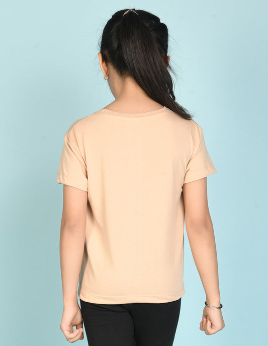 Nusyl Girl's Beige Super Girl & Star Printed Regular Fit T-Shirt