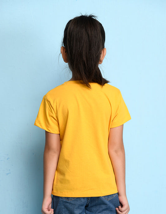 Nusyl Girl's Yellow My Little Fairy Printed Regular Fit T-Shirt