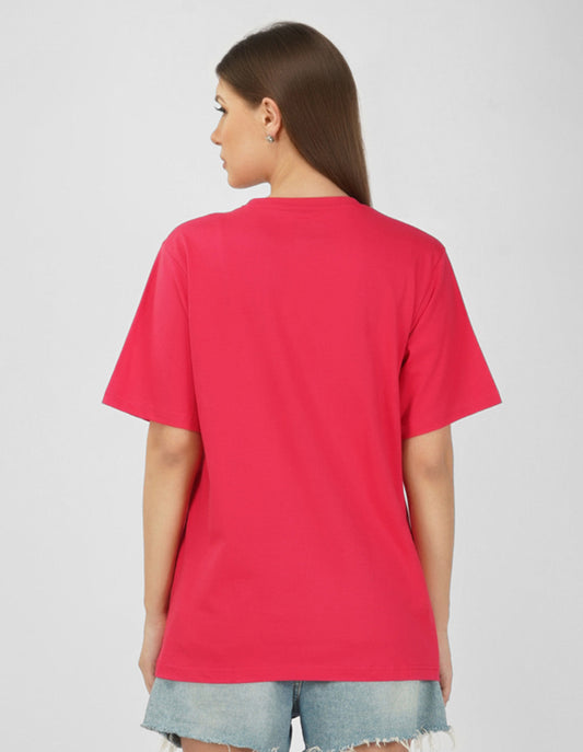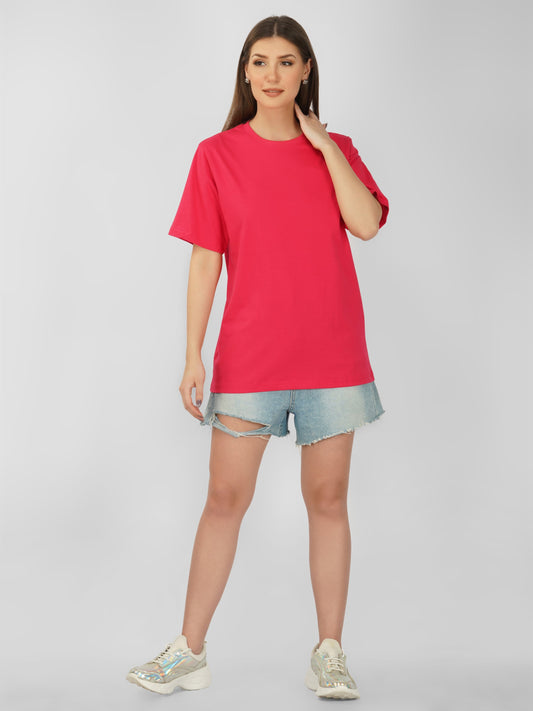 Nusyl Women Hot Pink Solid oversized t-shirt