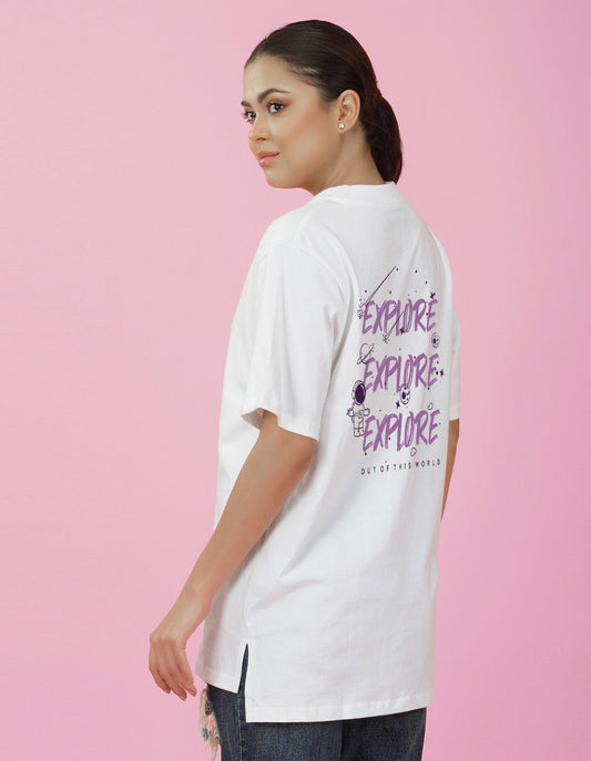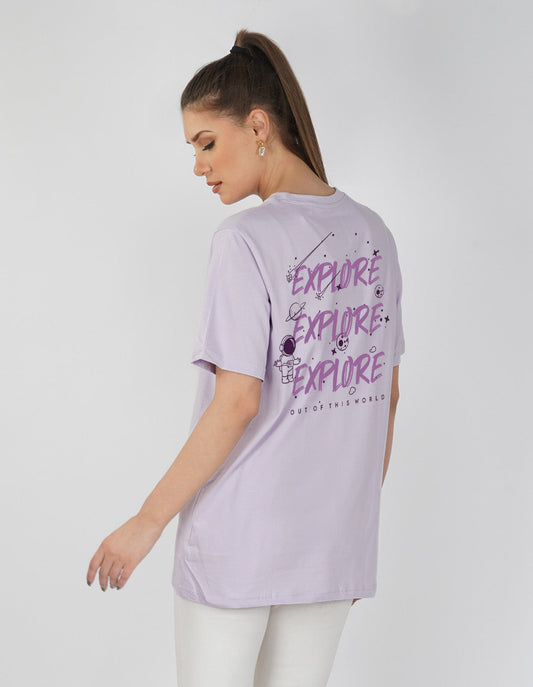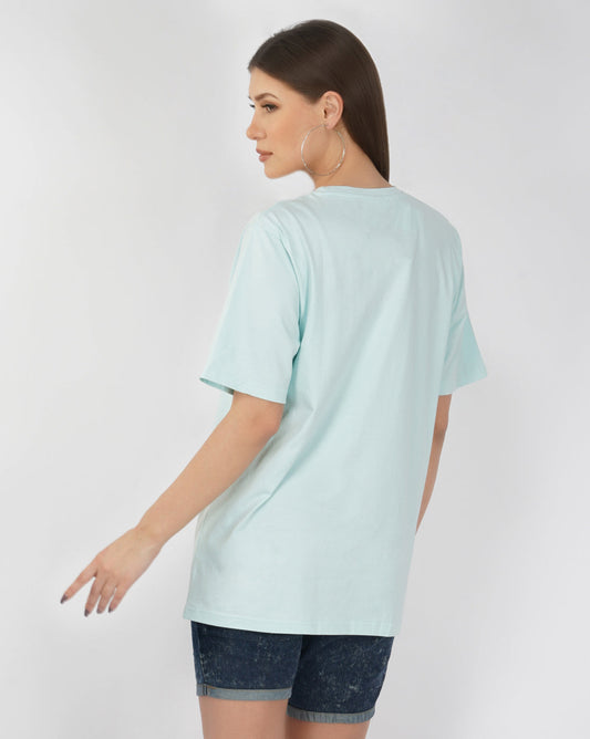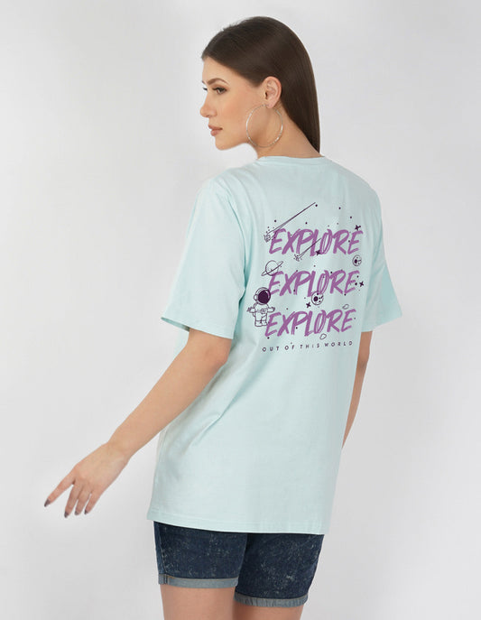 Nusyl Women Powder Blue Explore print oversized t-shirt