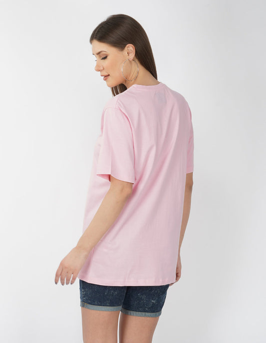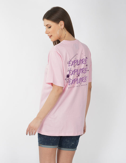 Nusyl Women Light Pink Explore print oversized t-shirt