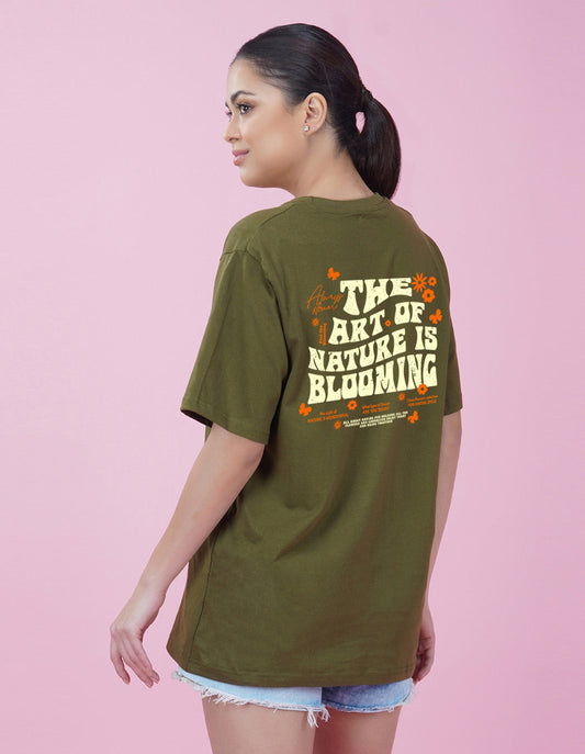 Nusyl Women Olive Betterfly print oversized t-shirt