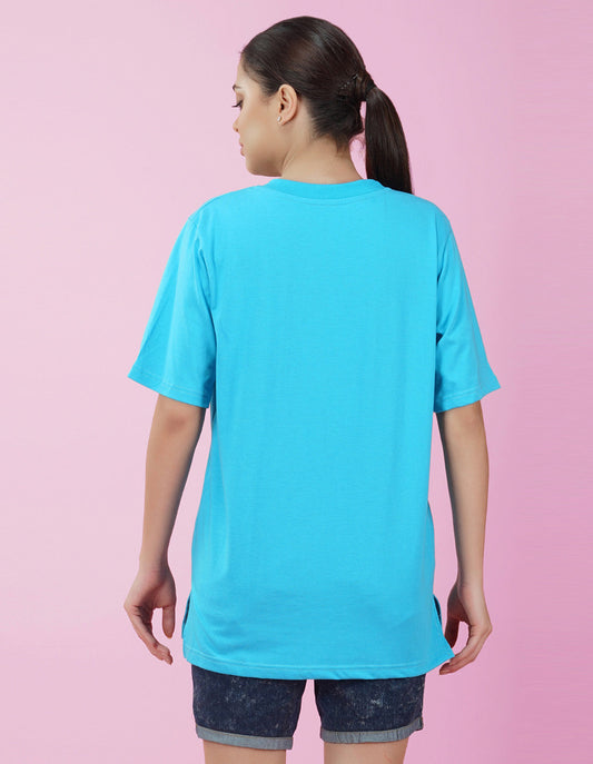Nusyl Women Sky Blue Text print oversized t-shirt