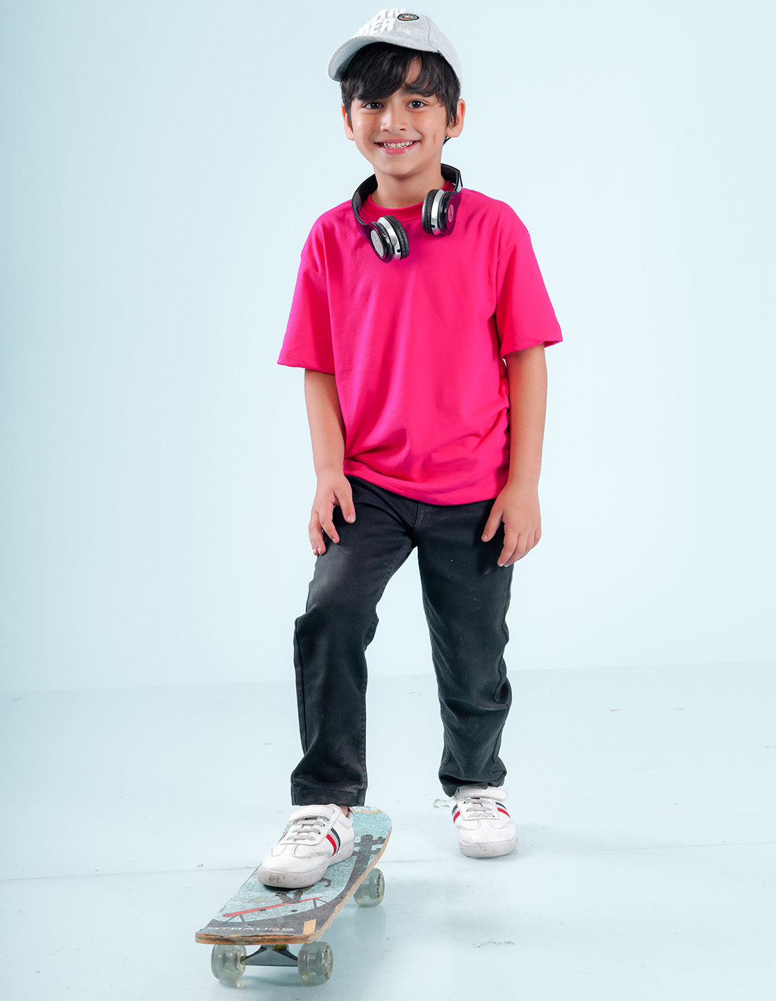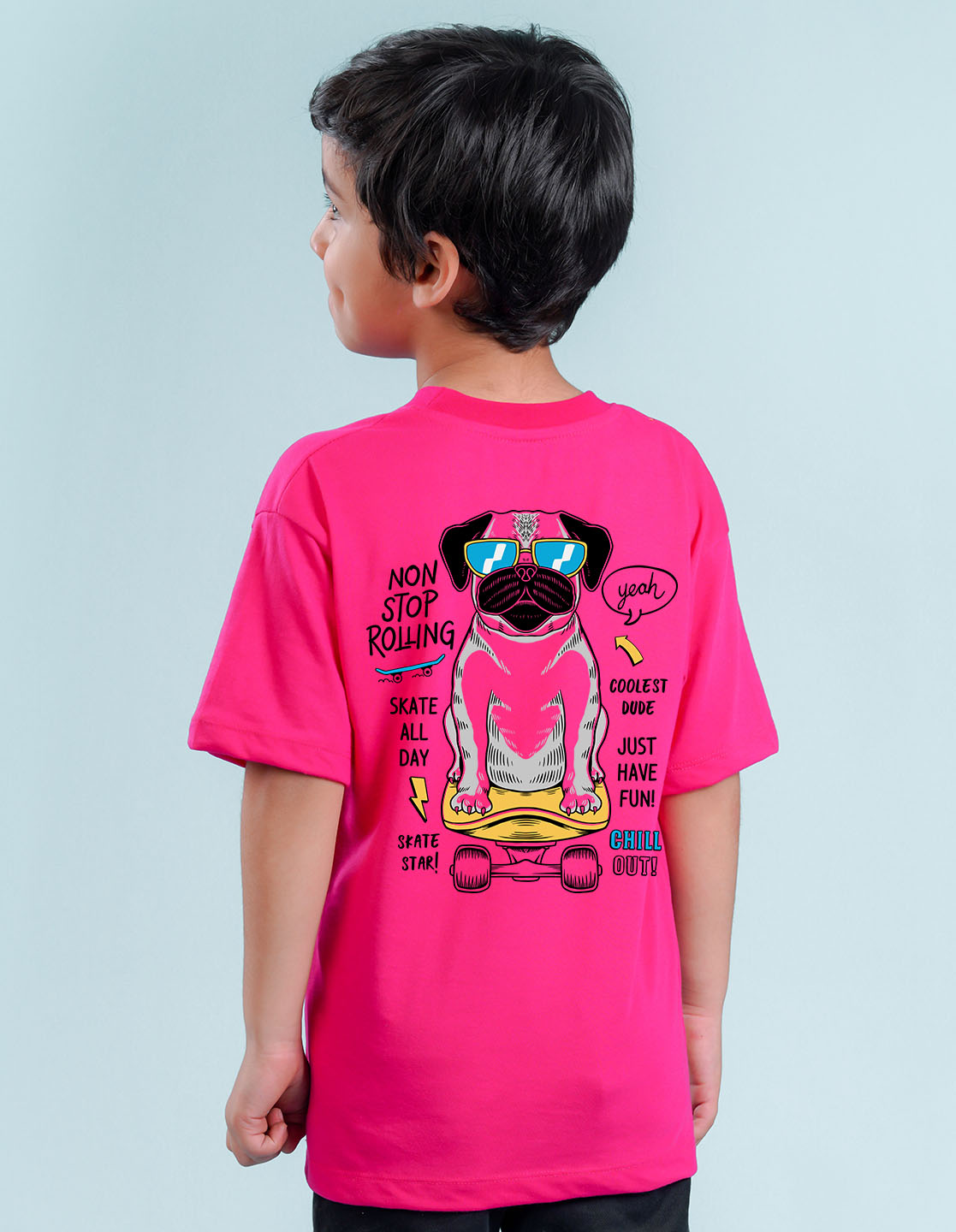 Nusyl Hot Pink Boys Printed Oversized T-shirt
