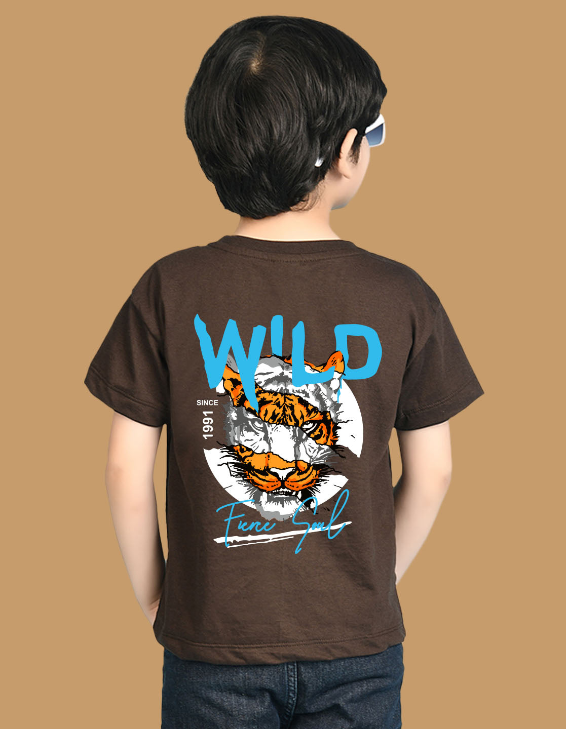 Nusyl Boys Brown Wild Text Printed Short Sleeve Oversized T-Shirt