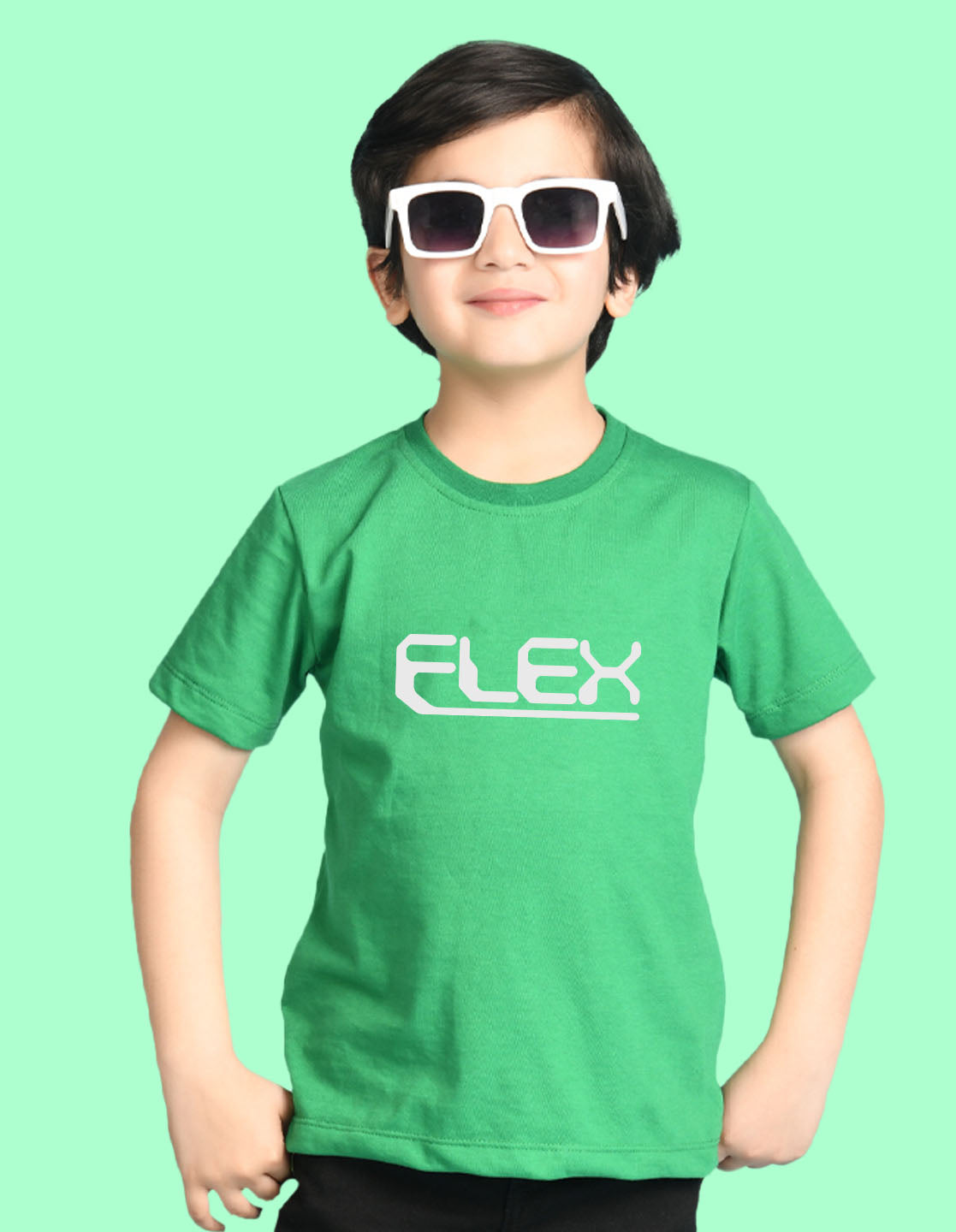 Nusyl Boys Green Flex Text Printed Short Sleeve Oversized T-Shirt