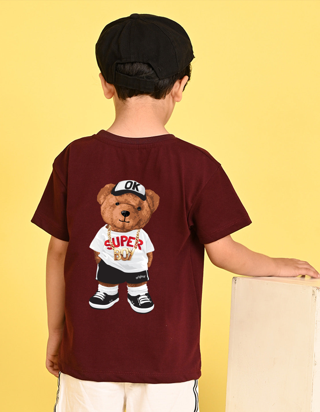 Nusyl Boys Wine Awesome Text Printed Short sleeve Cotton Blend Oversized T-shirts