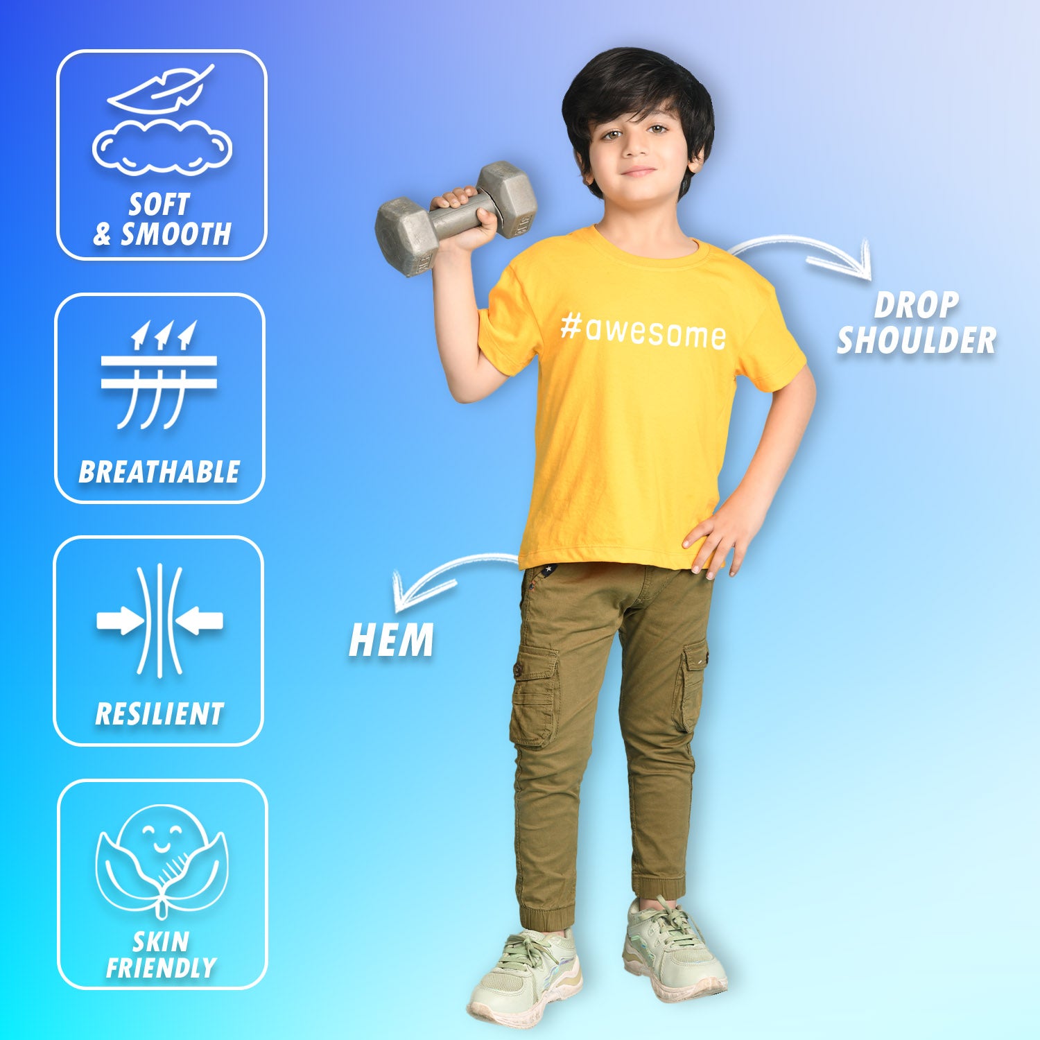 Nusyl Boys Yellow Awesome Text Printed Short sleeve Cotton Blend Oversized T-shirts