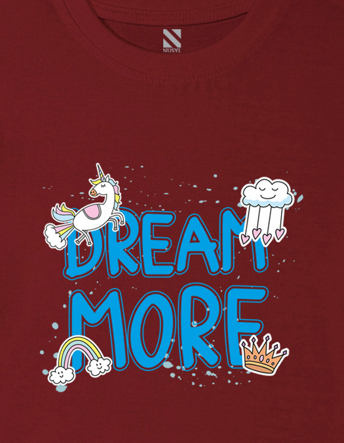 Nusyl Girl's Wine Dream More Text Printed Cotton blend Half Sleeve Drop Shoulder Oversized T-Shirt
