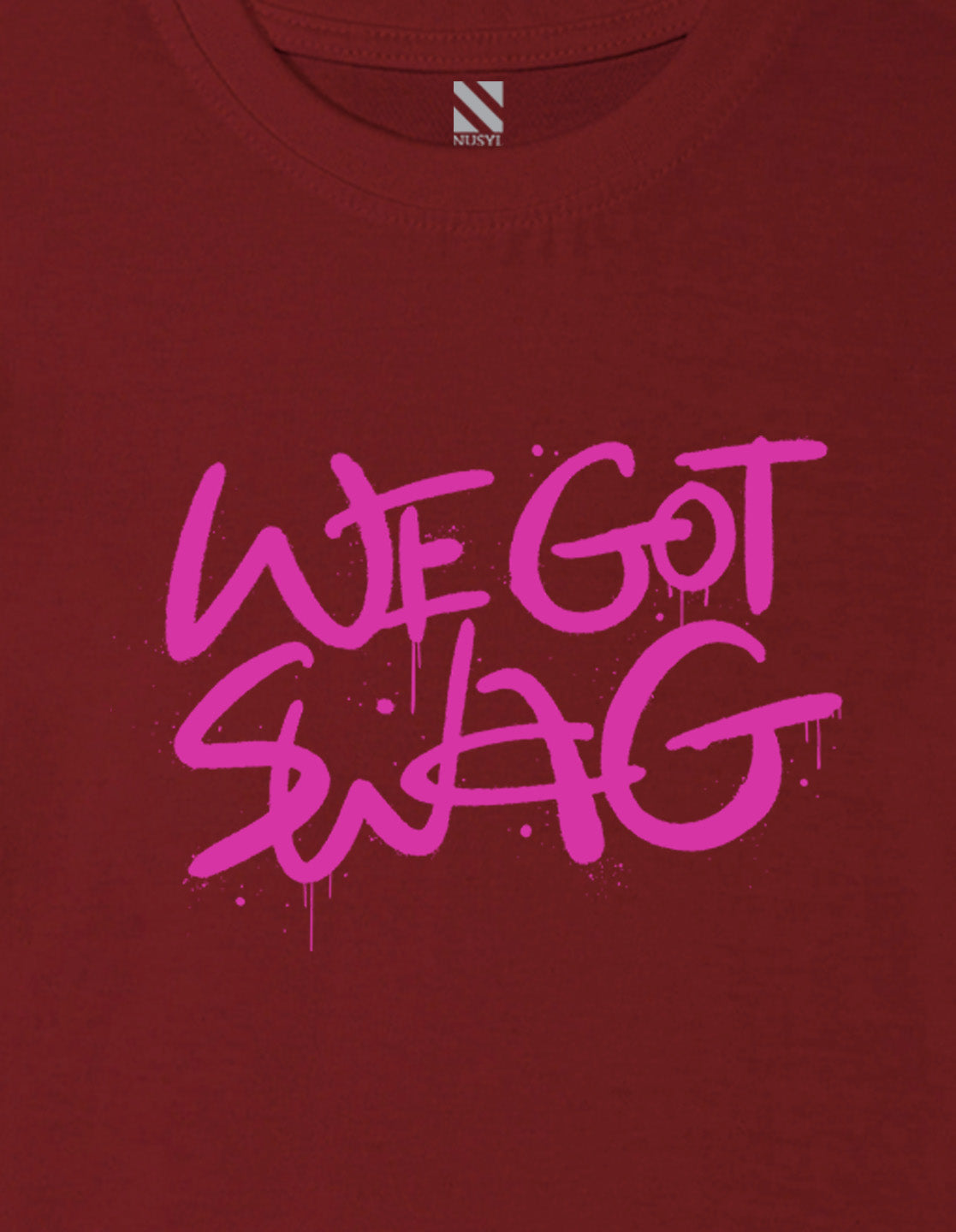 Nusyl Girl's Wine We Got Swag Text Printed Cotton blend Half Sleeve Drop Shoulder Oversized T-Shirt