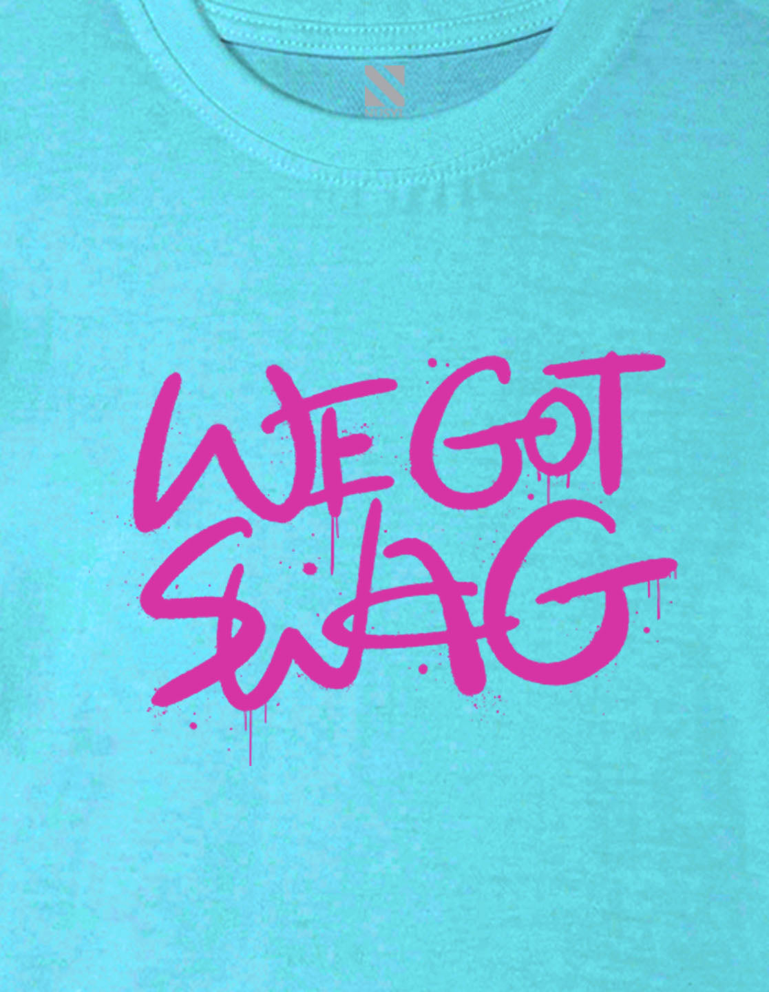 Nusyl Girl's Sky Blue We Got Swag Text Printed Cotton blend Half Sleeve Drop Shoulder Oversized T-Shirt