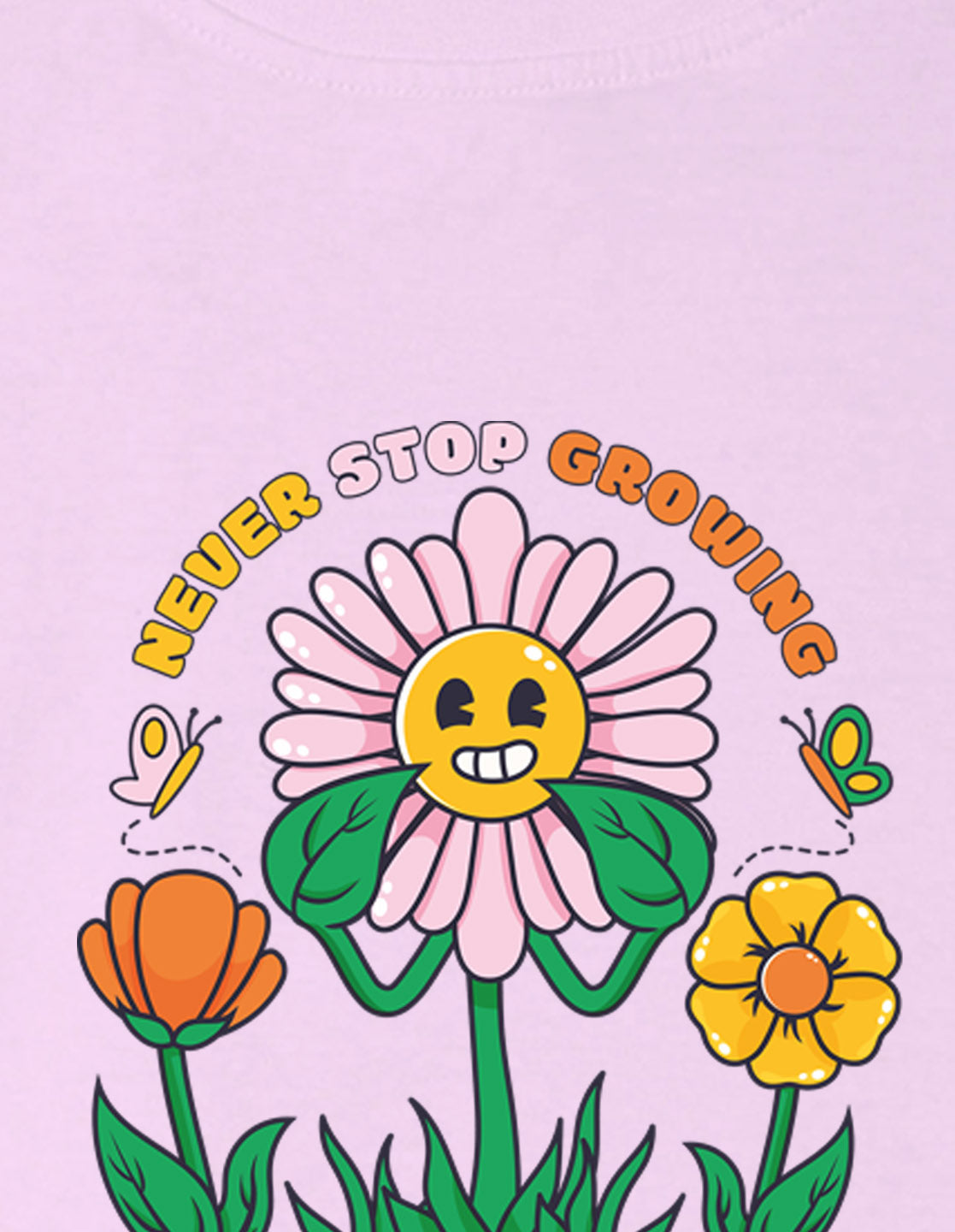 Nusyl Girl's Lilac Smiley Face Flower Printed Cotton blend Half Sleeve Drop Shoulder Oversized T-Shirt