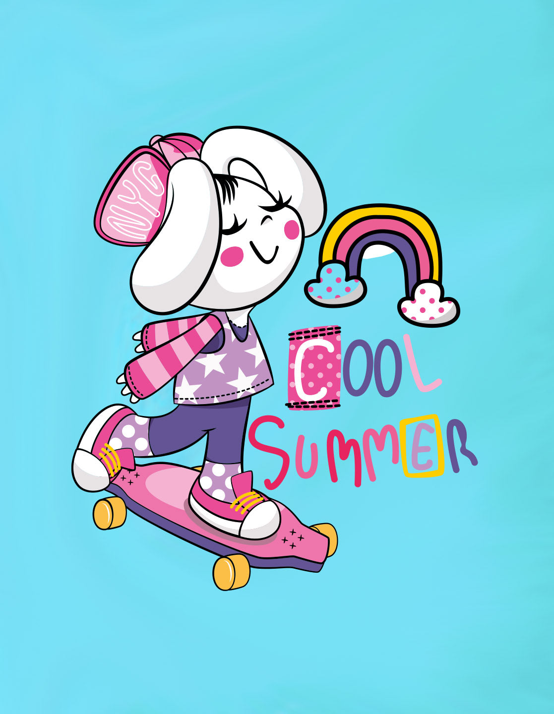 Nusyl Girls Sky Blue Cool Summer Text Printed Short sleeve Cotton Blend Oversized T-shirts