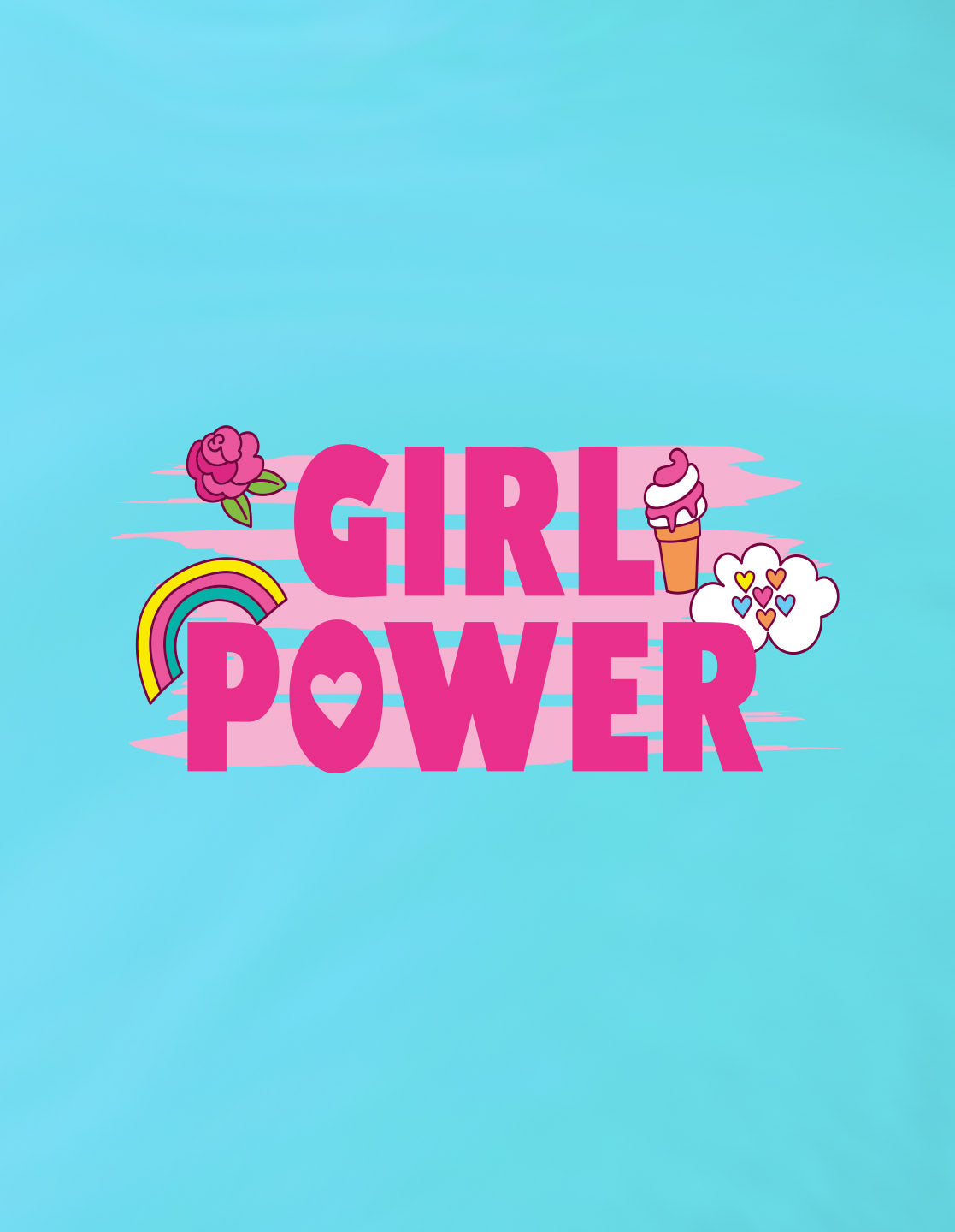 Nusyl Girls Sky Blue flower & Girl Power Text Printed Short sleeve Oversized T-shirts