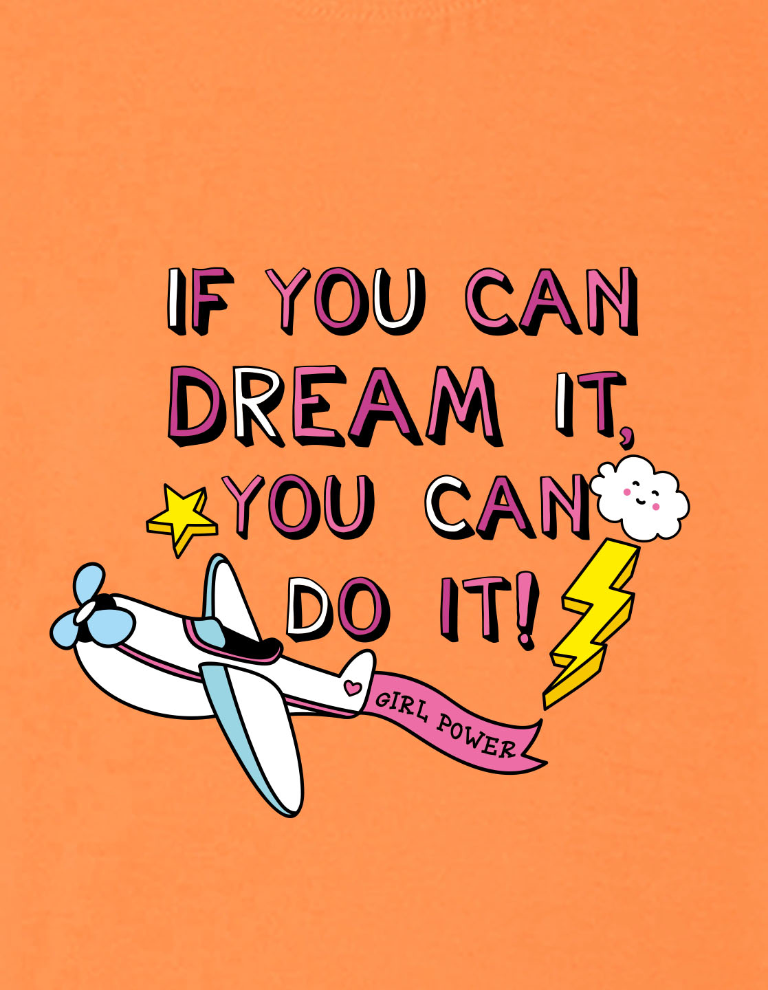 Nusyl Girls Orange if you can Dream it text Printed Short sleeve Cotton Blend Oversized T-shirts