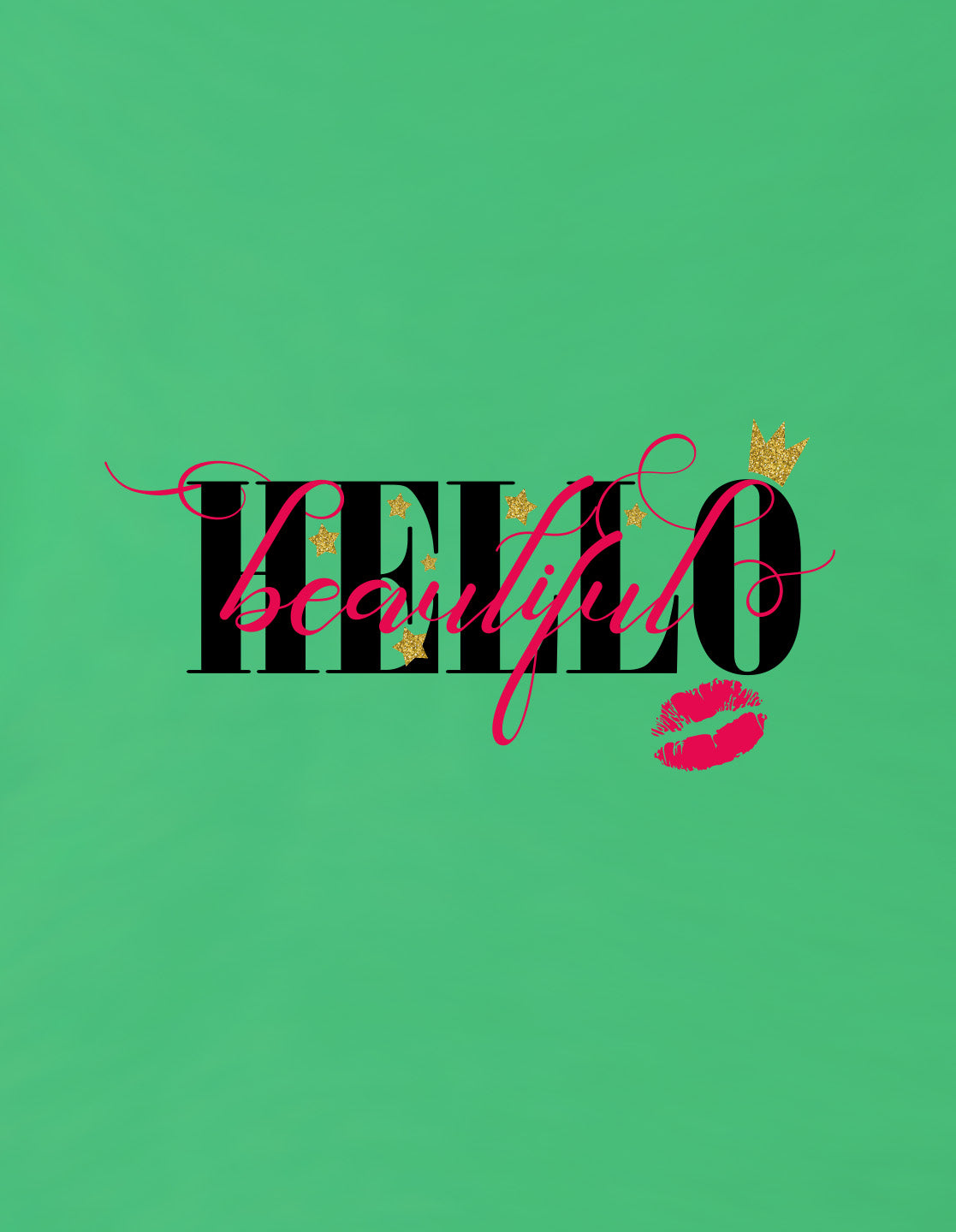 Nusyl Girls Green Hellow Text Printed Short sleeve Cotton Blend Oversized T-shirts