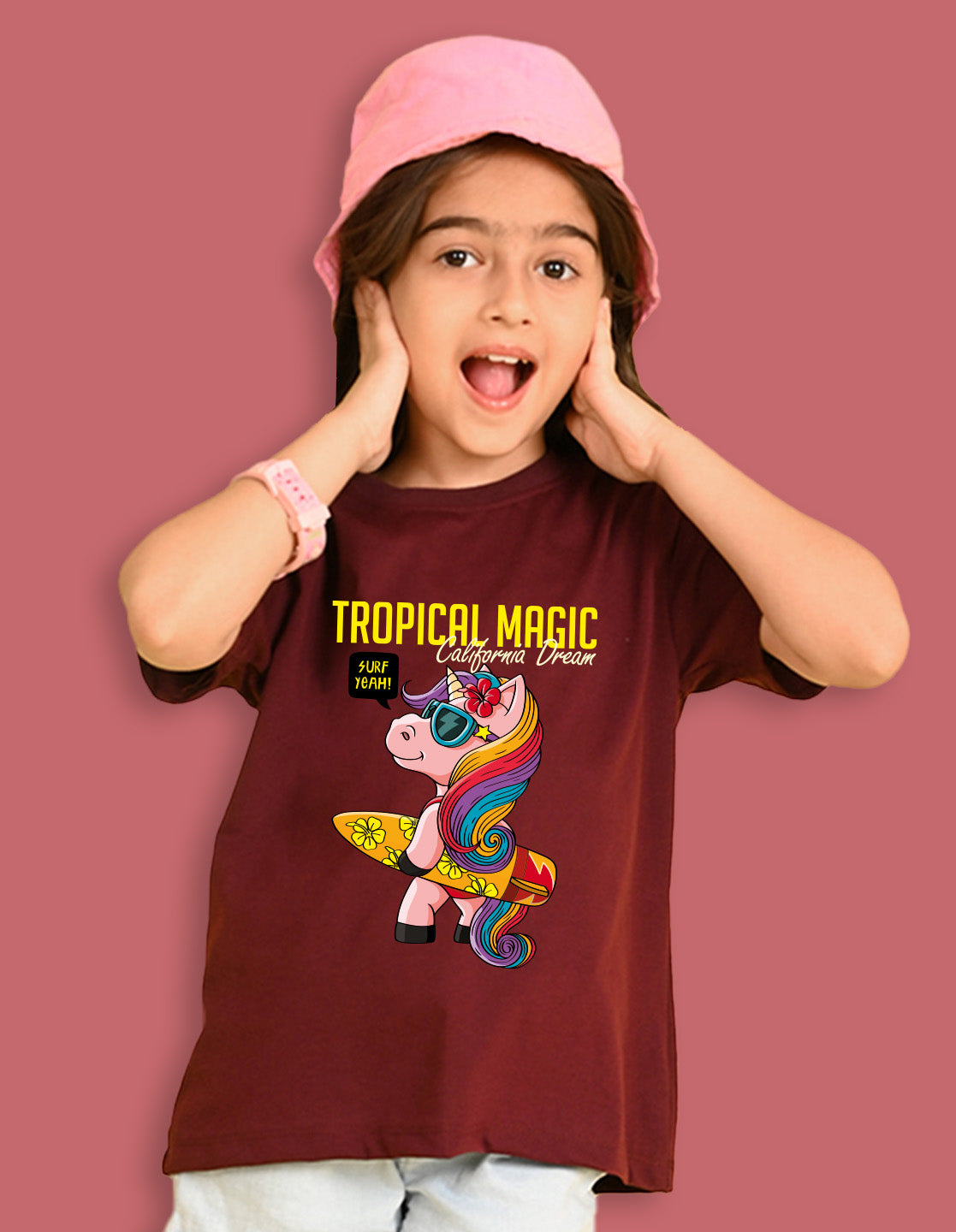 Nusyl Girls Wine Tropical Magic Text Printed Short sleeve Cotton Blend Oversized T-shirts