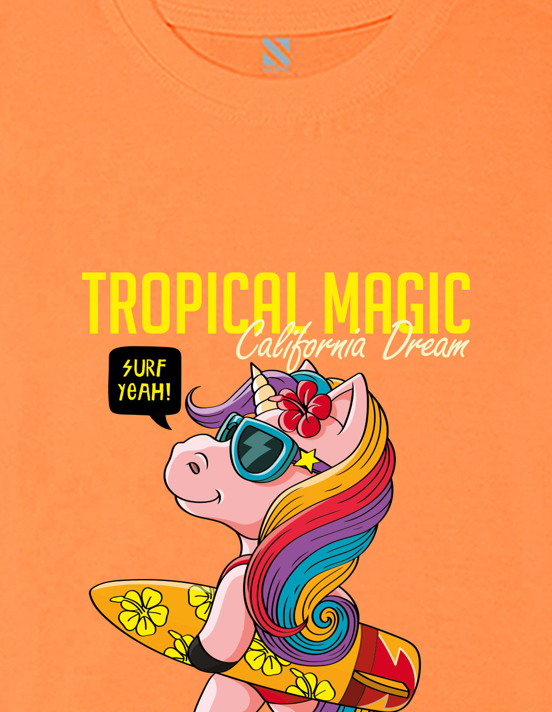 Nusyl Girls Orange Tropical Magic Text Printed Short sleeve Cotton Blend Oversized T-shirts
