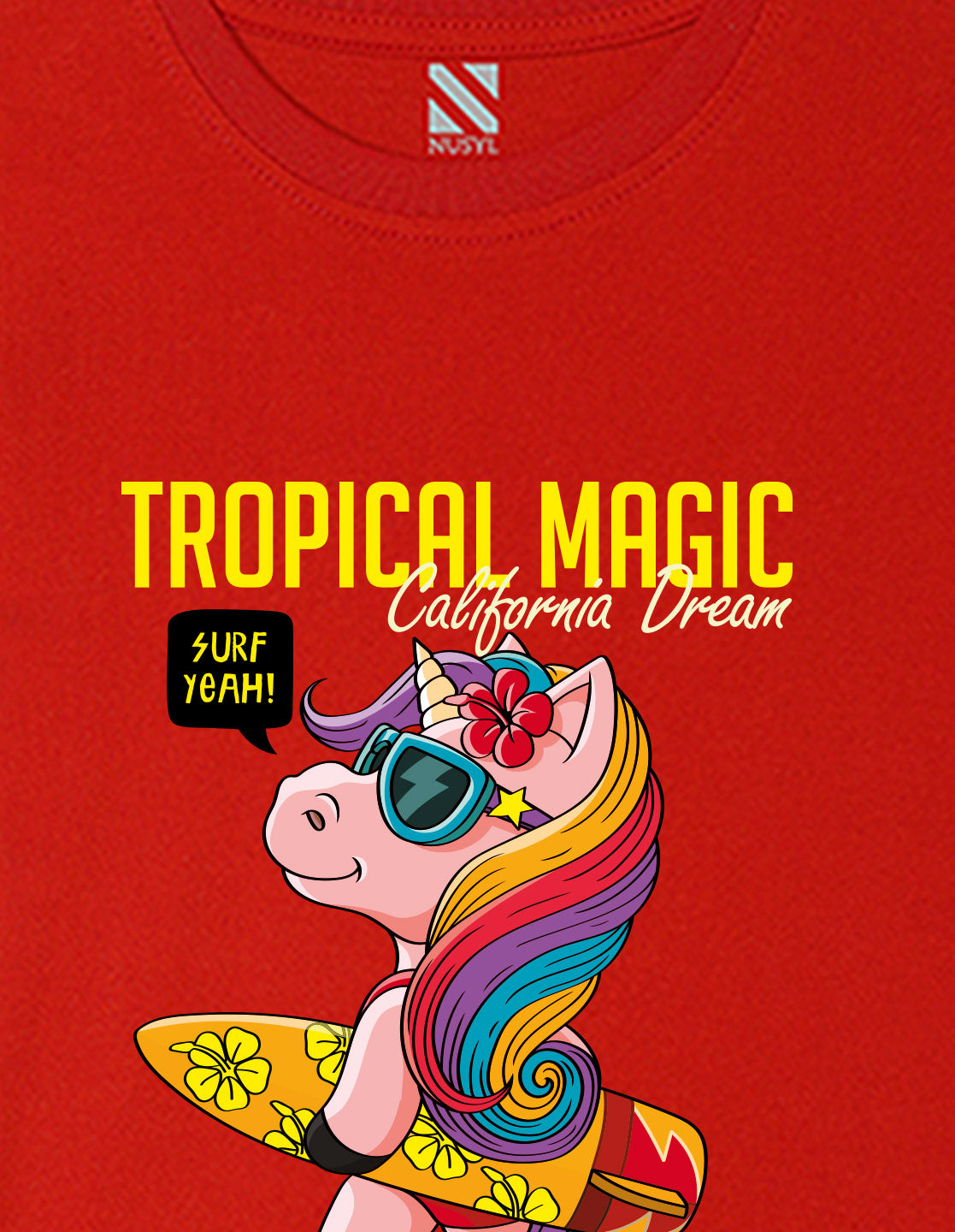 Nusyl Girls Red Tropical Magic Text Printed Short sleeve Cotton Blend Oversized T-shirts