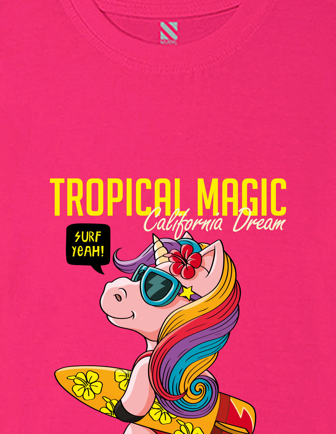 Nusyl Girls Hot Pink Tropical Magic Text Printed Short sleeve Cotton Blend Oversized T-shirts