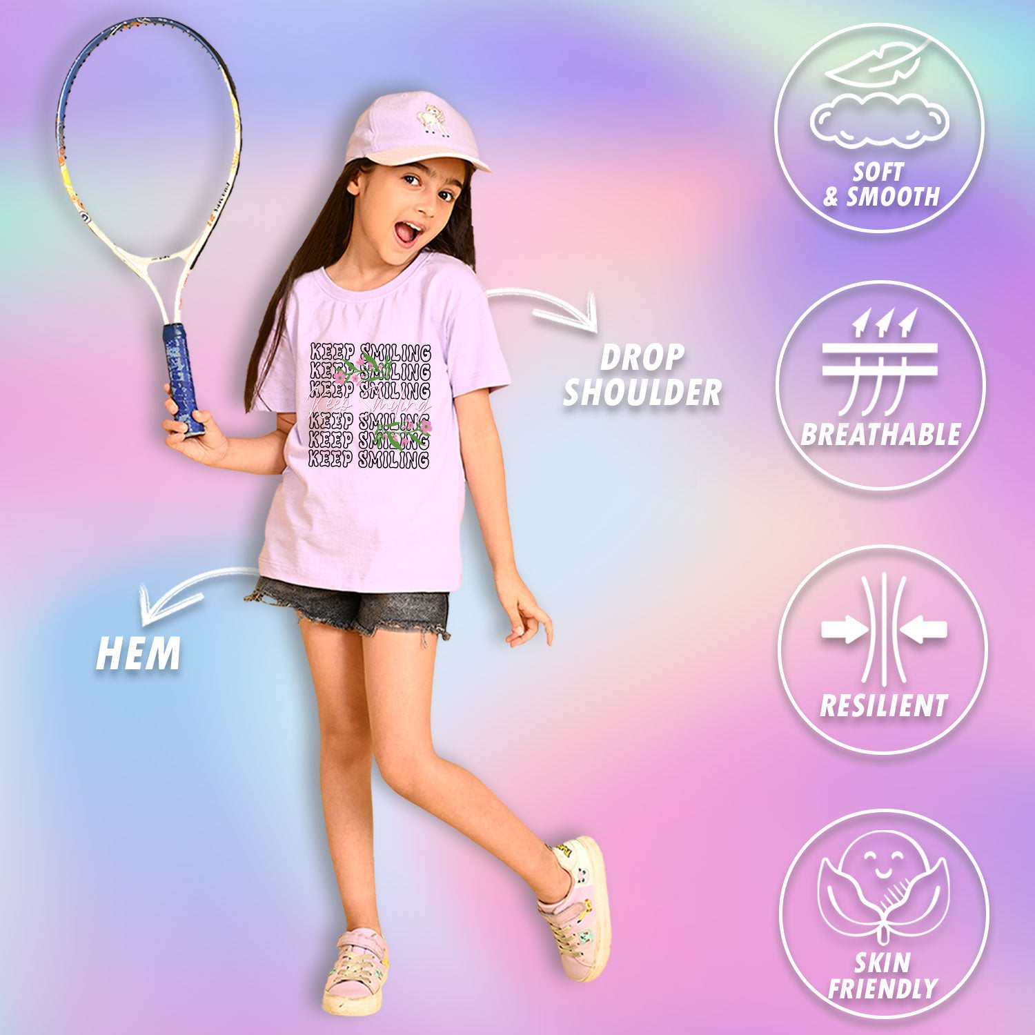 Nusyl Girls Lilac keep smiling text Printed Short sleeve Cotton Blend Oversized T-shirts