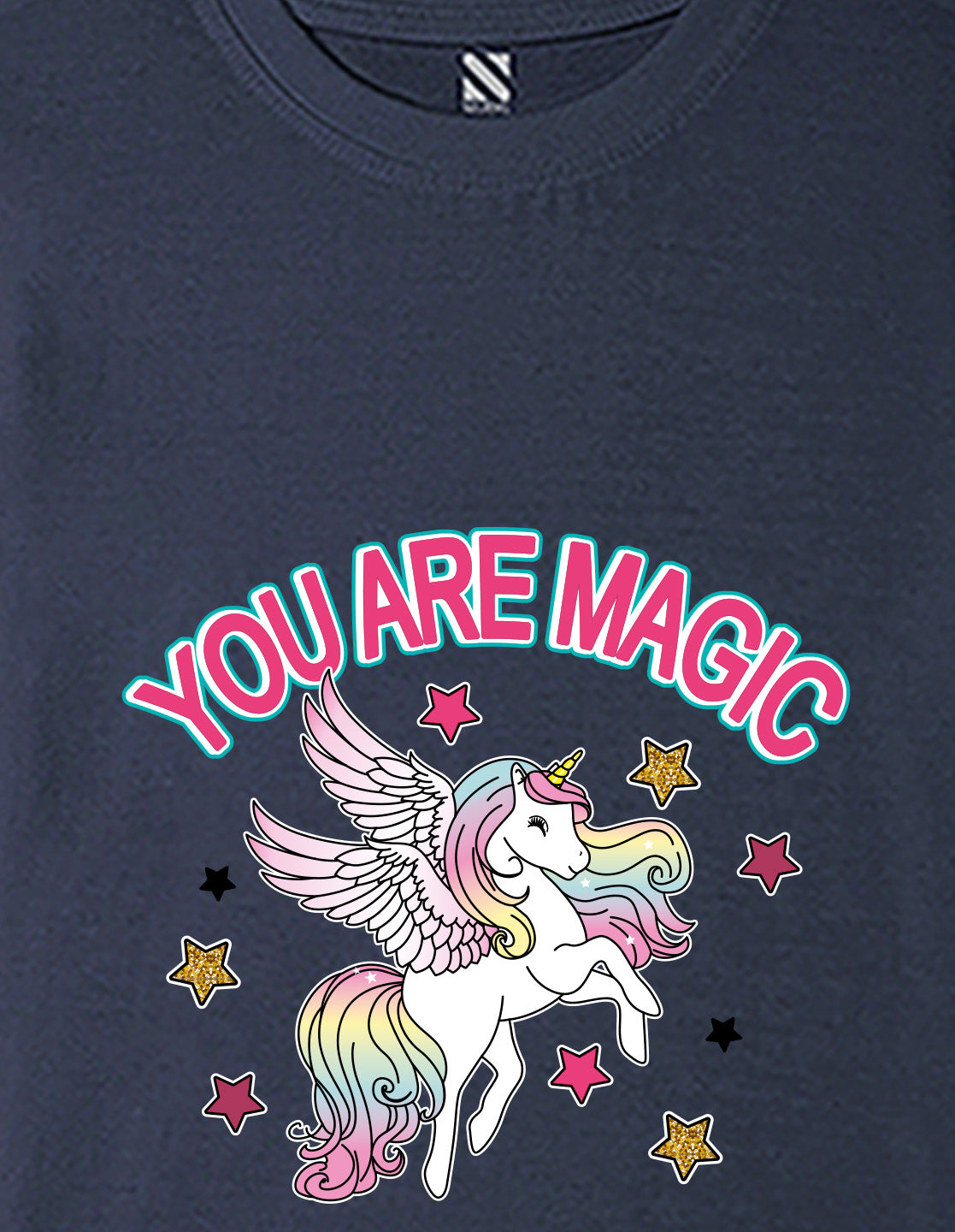 Nusyl Girls Navy Blue You Are Magic Text Printed Short sleeve Cotton Blend Oversized T-shirts