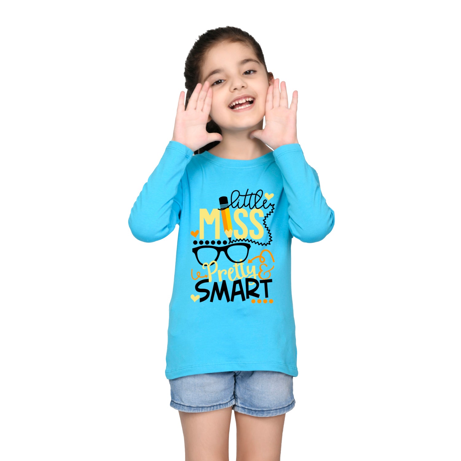 Sky Blue Text Printed Girls T-shirt