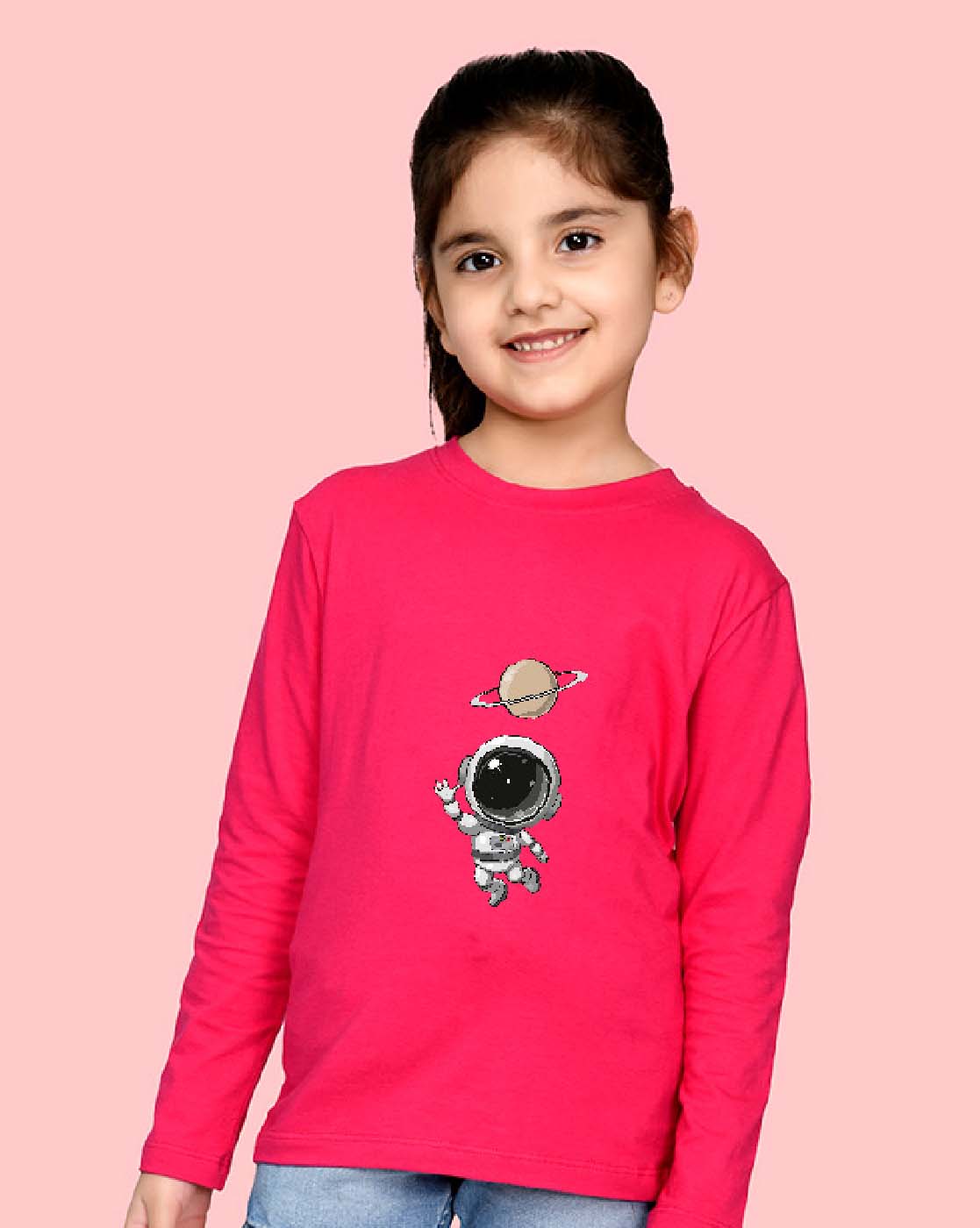 Nusyl Girls Hot Pink Astronaut Printed Full Sleeve T-shirt