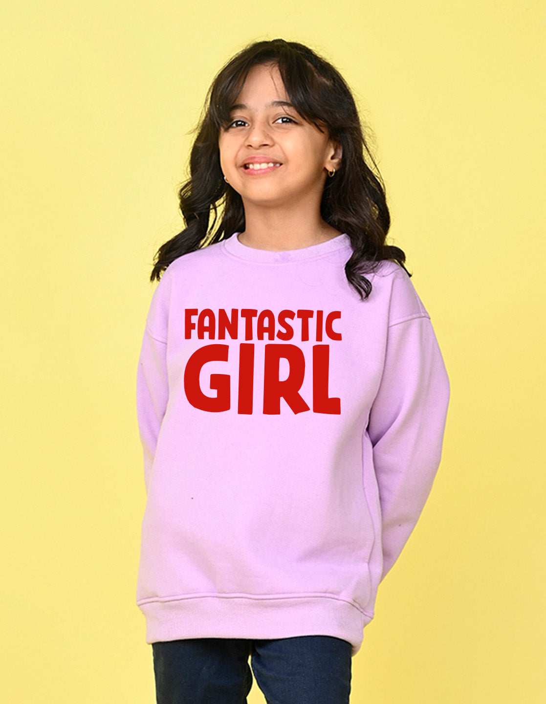 Nusyl Girl's Lilac Fantastic Girl Text Printed Round Neck Oversized Sweatshirt