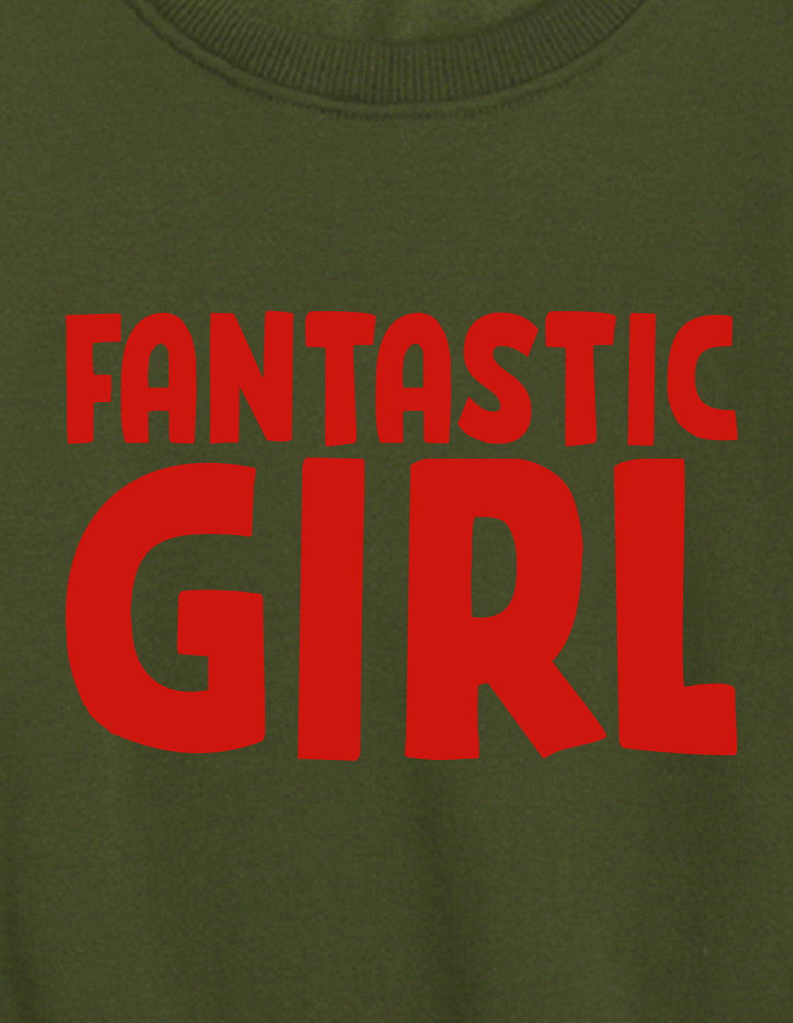 Nusyl Girl's Olive Fantastic Girl Text Printed Round Neck Oversized Sweatshirt