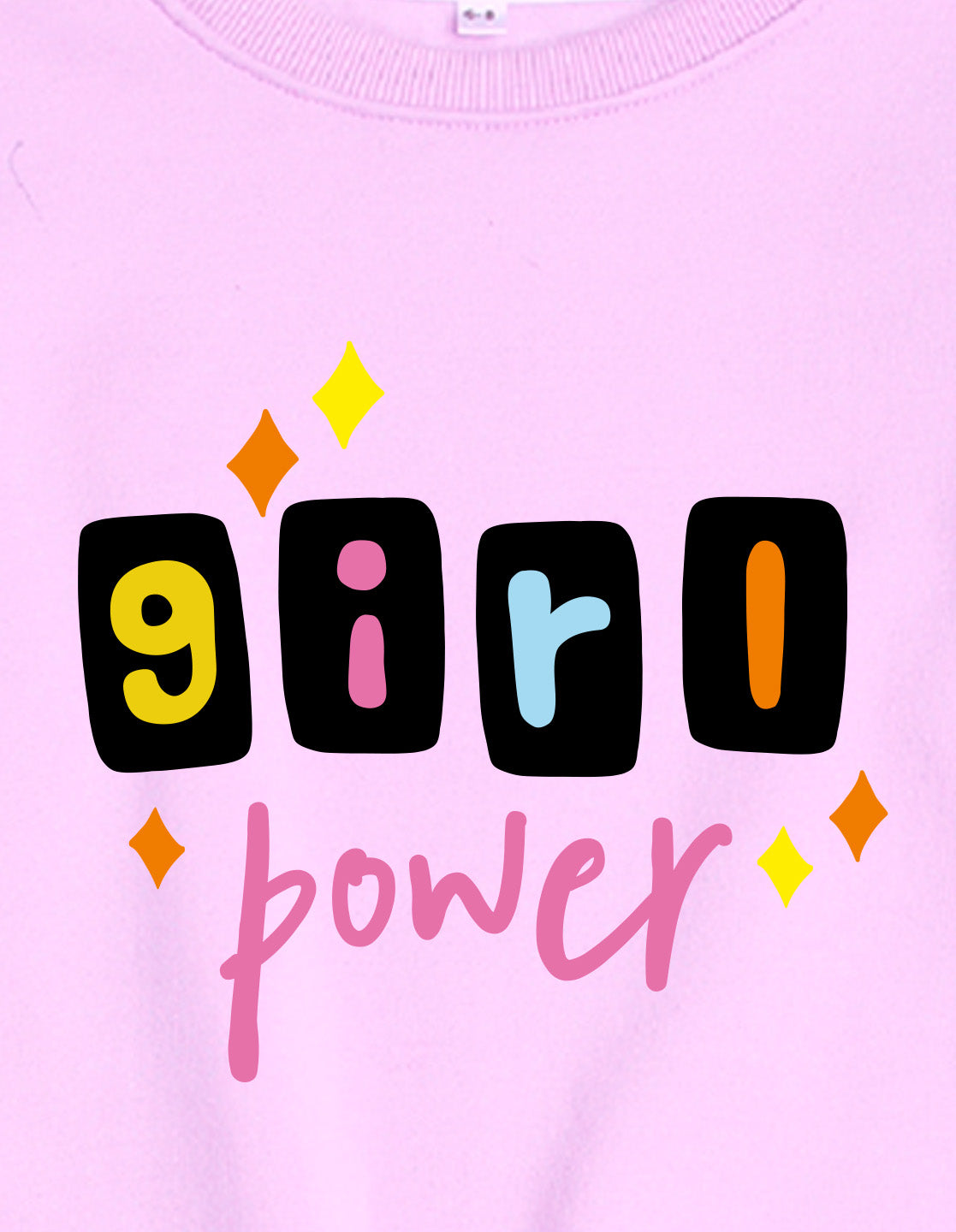 Nusyl Girl's Lilac Girl Power Text Printed Round Neck Oversized Sweatshirt