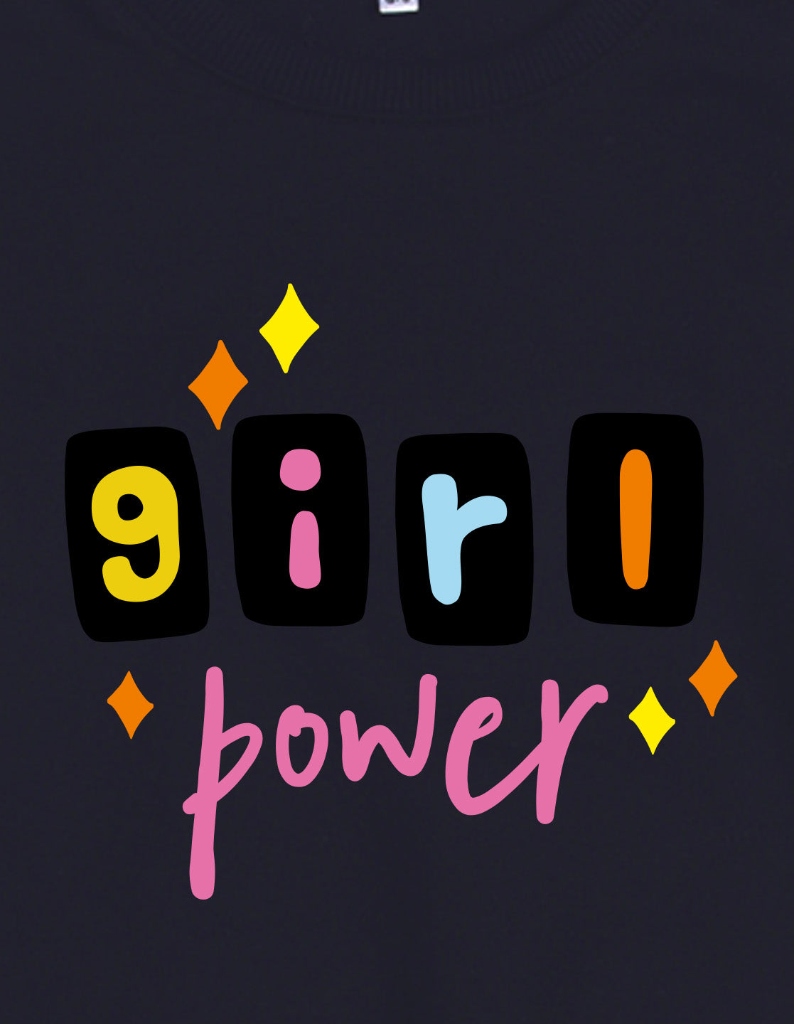 Nusyl Girl's Navy Blue Girl Power Text Printed Round Neck Oversized Sweatshirt