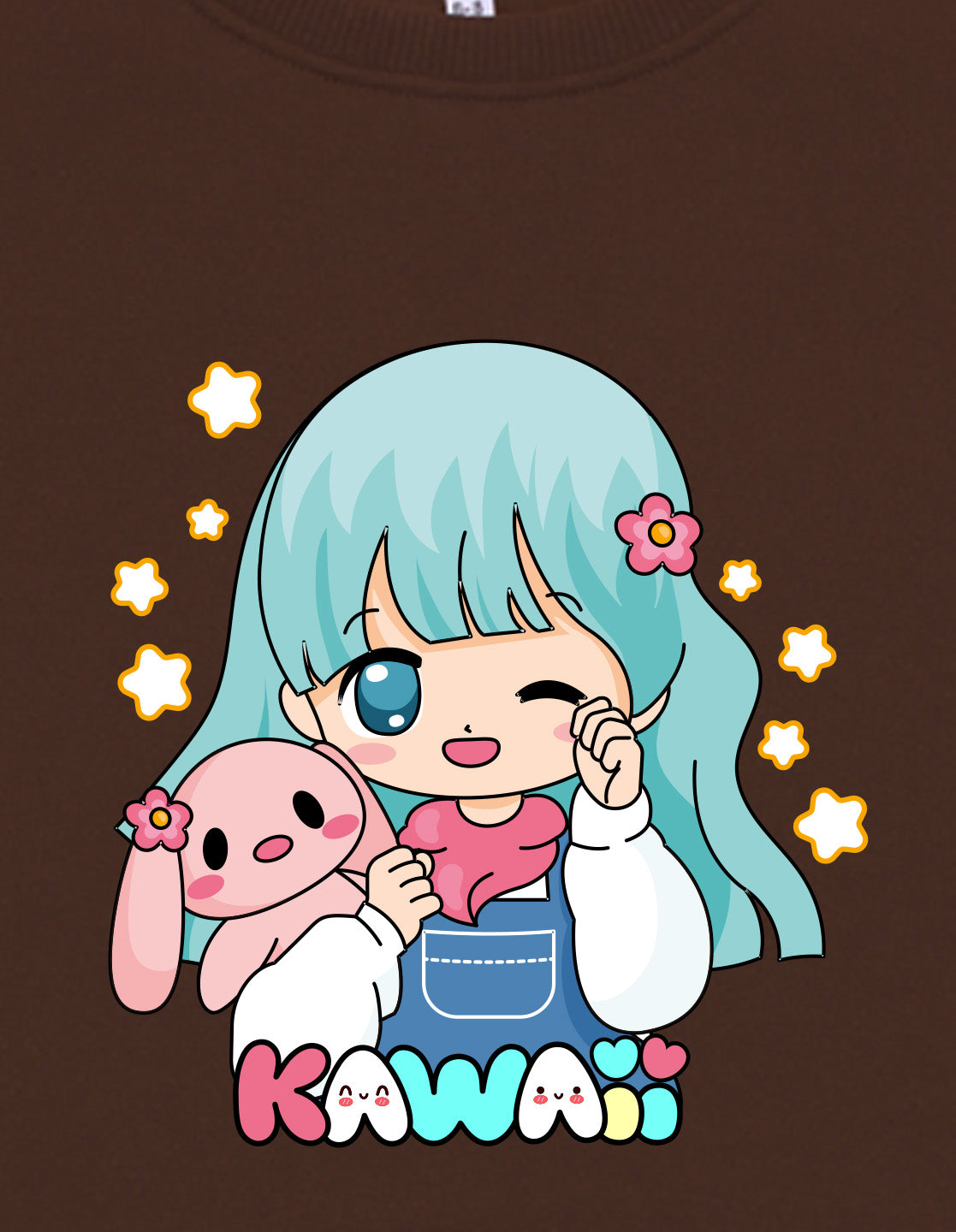 Nusyl Girl's Brown Cute girl & kawaii Text Printed Round Neck Oversized Sweatshirt