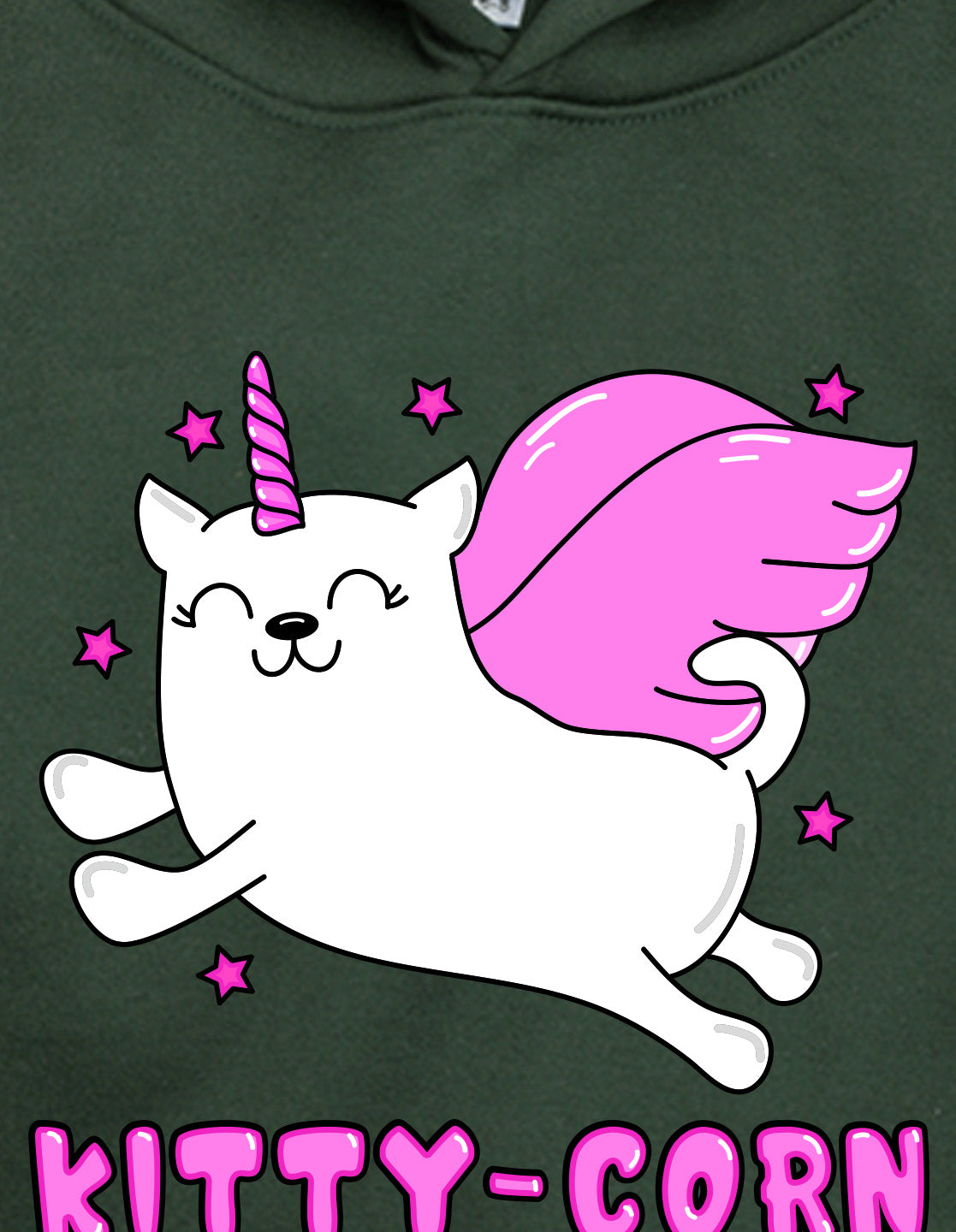 Nusyl Girl's Olive kitty-corn text Printed hoodie