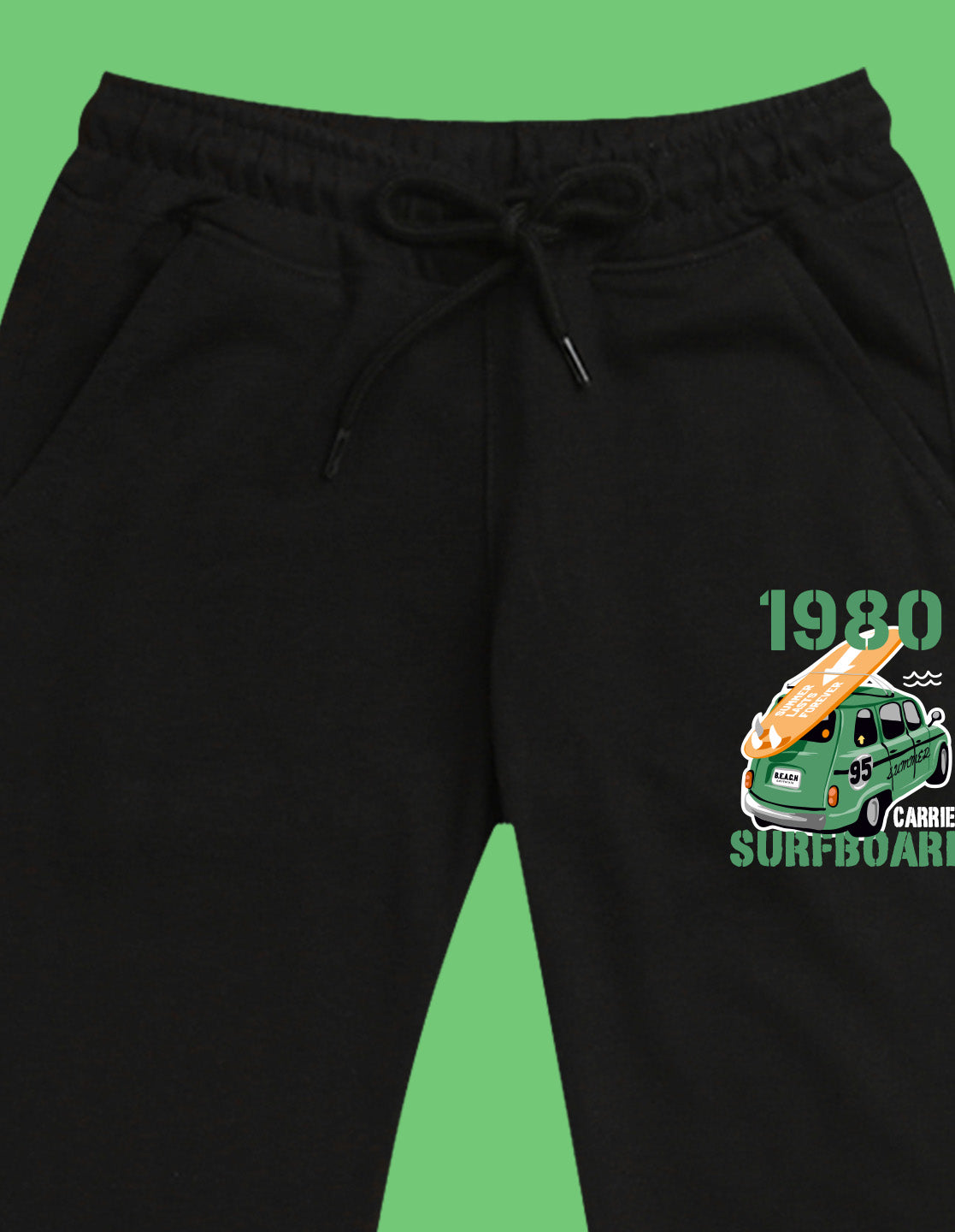 Nusyl Boys Black Typography slogan with surfboard car carrier Printed Ankle Length Track Pant
