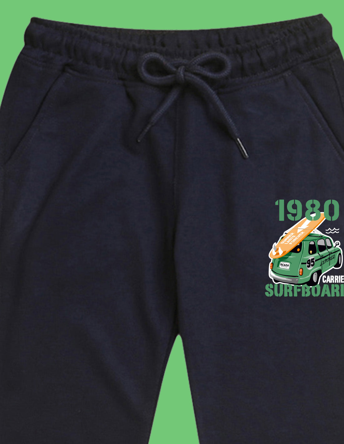 Nusyl Boys Navy Blue Typography slogan with surfboard car carrier Printed Ankle Length Track Pant