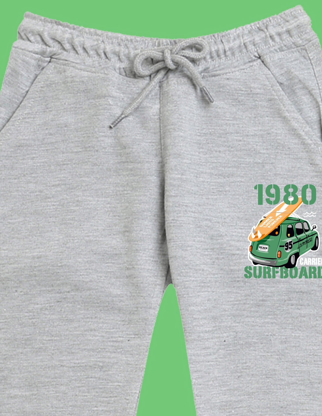Nusyl Boys Grey Typography slogan with surfboard car carrier Printed Ankle Length Track Pant