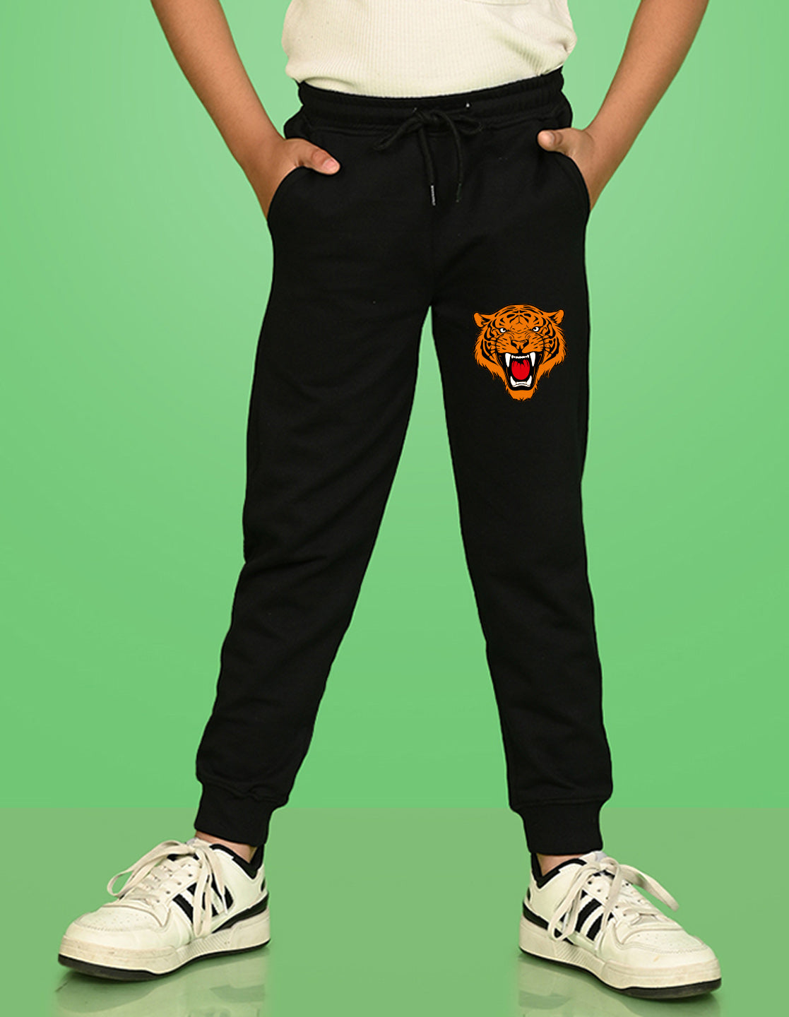 Nusyl Boys Black Tiger Face Printed Ankle Length Track Pant