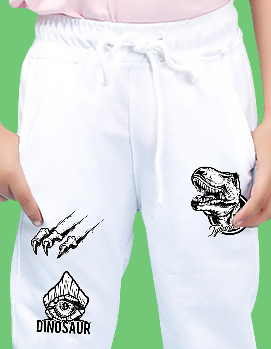 Nusyl Boys White Dinosaur Printed Ankle Length Track Pant