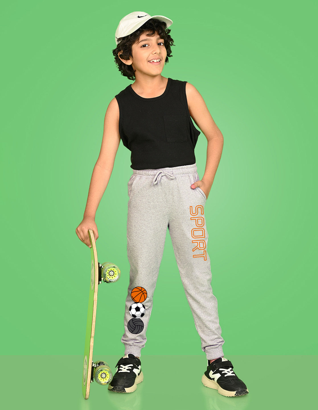 Nusyl Boys Grey Basketball & Text Printed Ankle Length Track Pant